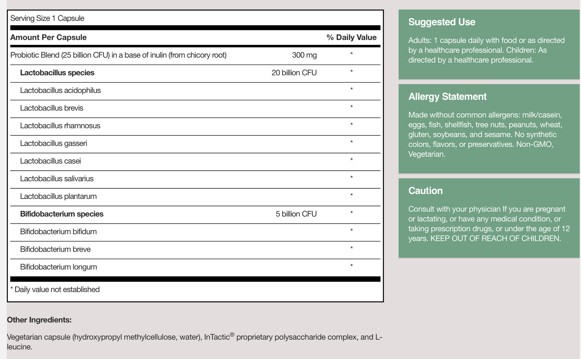 - 10 probiotic species in a potent 25B CFU blend